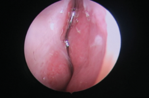 Figure 1. Endoscopic view of deviated nasal septum into right nasal cavity.