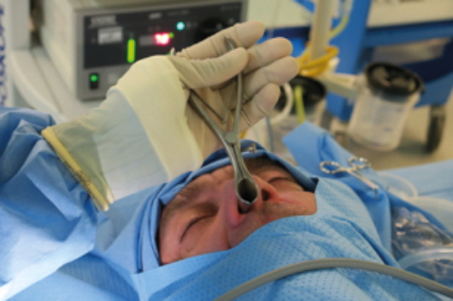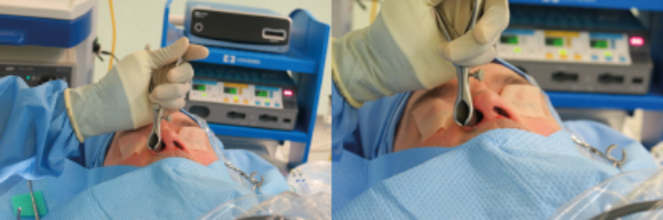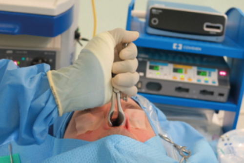 Figure 2. The longest available Killian’s speculum (typically 7.5 or 9cm) is used.