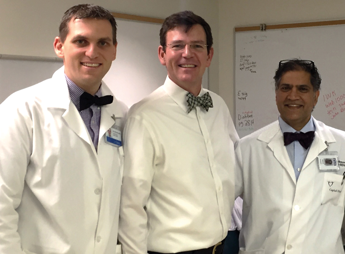Figure 2: (L-R) Nicholas Jufas, David Morris and Manohar Bance in the outpatient clinic