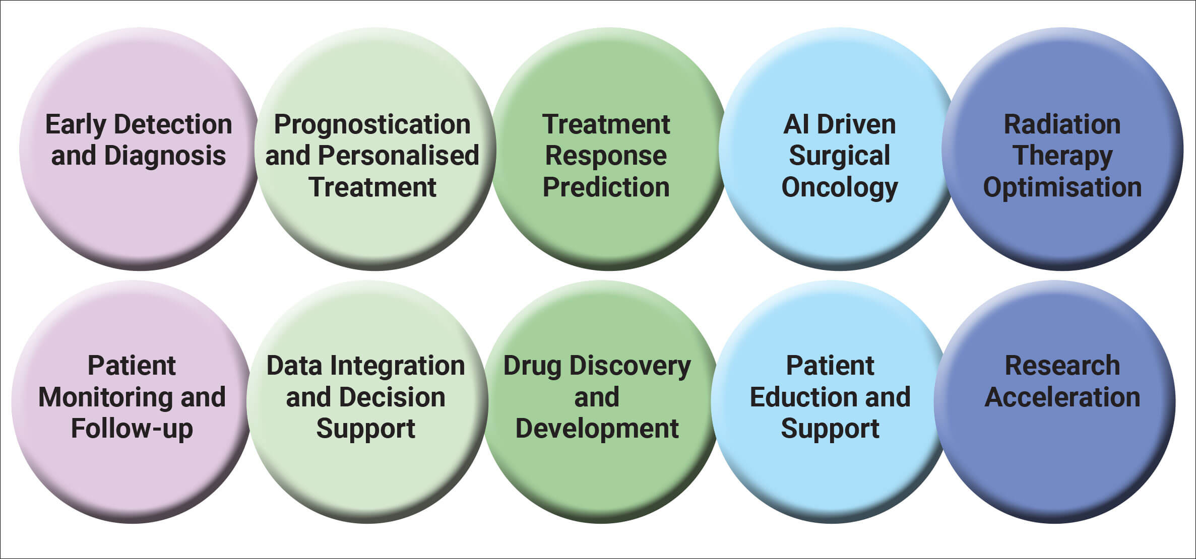 Genomic data analysis: AI and computation biology is being used to analyse genomic and molecular data which is revolutionising personalised treatment planning. Deep learning algorithms can identify specific genetic mutations or biomarkers associated with worse clinical outcomes and can enable clinicians to tailor treatment, incorporating targeted therapies and immunotherapies early in the course of treatment for better outcomes.