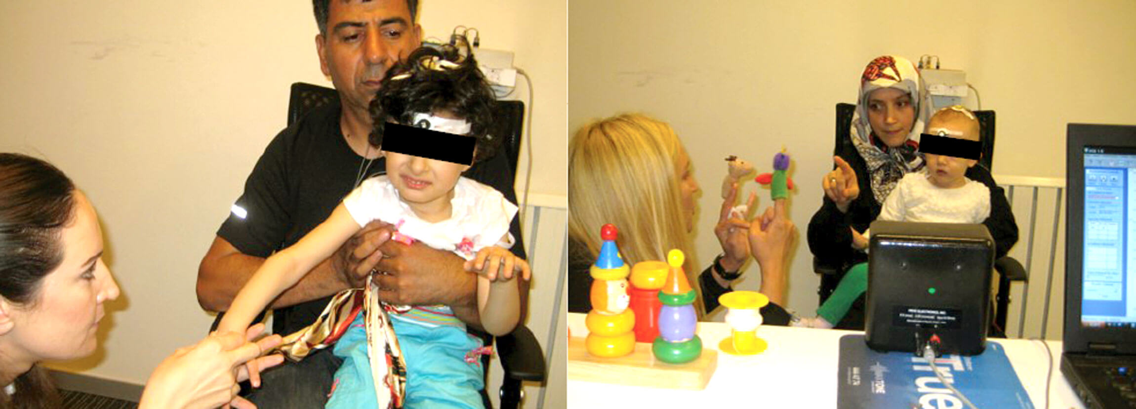 ACA is conducted in a quiet room. The client sits alone or on a parent’s knee, one metre away from the system’s free field speaker. The client needs to comply with electrode placement on vertex, low forehead and one mastoid. The client needs to remain alert, still, quiet and wear one or both of their listening devices. Usually the young client can be quietly amused with soft toys or by watching a muted video.