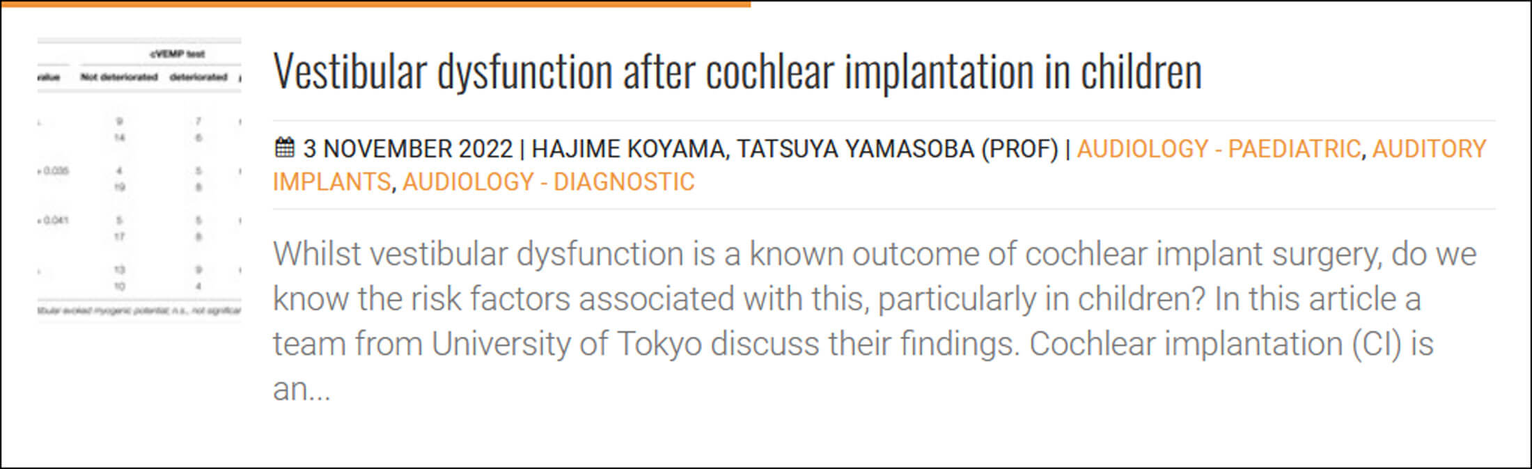 4. Kranick M, Wagner L, Plontke S, Rahne T. Optimizing stimulation parameters to record electrically evoked cortical auditory potentials in cochlear implant users. Cochlear Implants Int 2021;22(3):121-7.