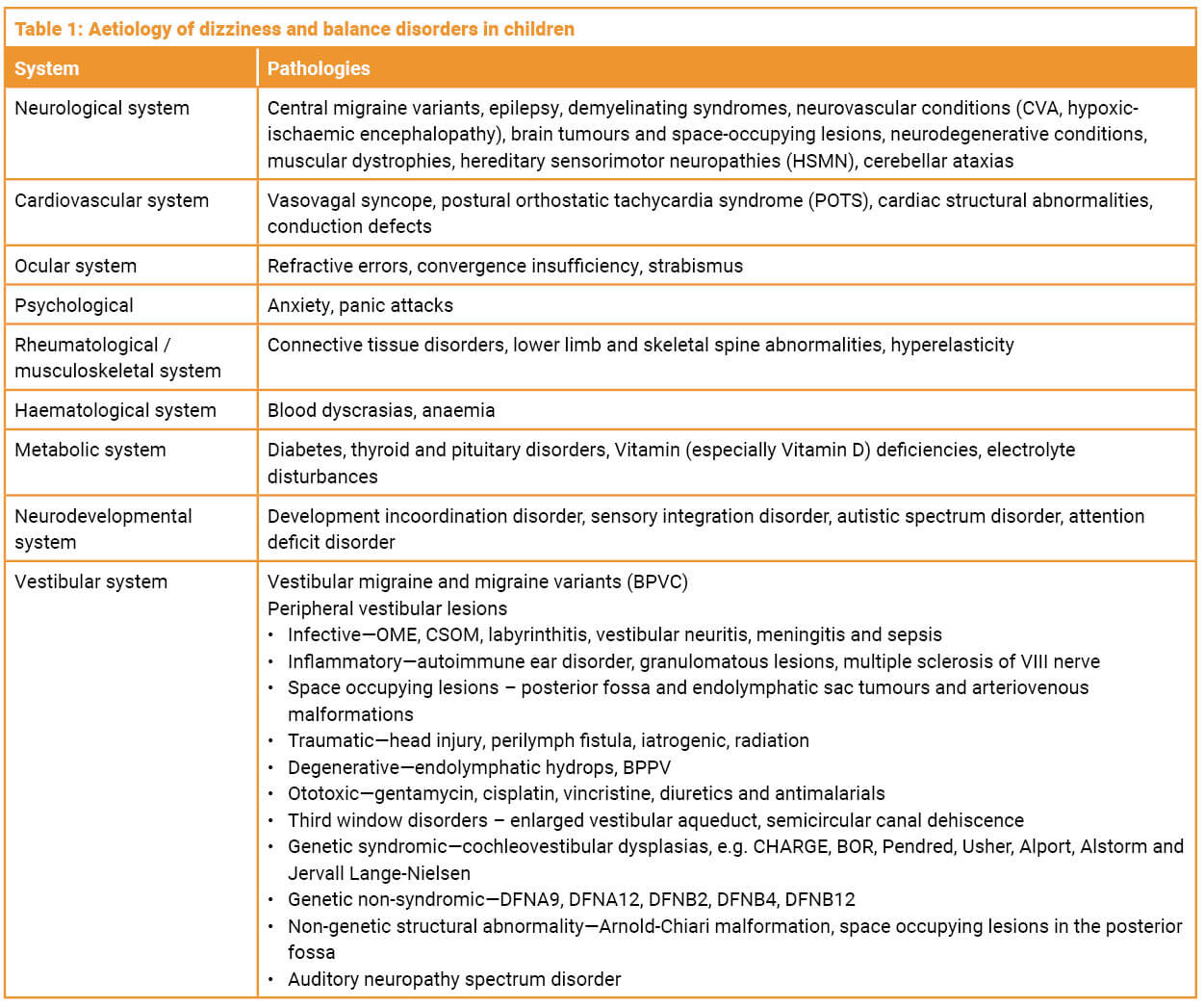 Dizziness and balance problems generate significant morbidity in children of all age groups. Vestibular disorders are the commonest causes of balance issues in children. These disorders can lead to cognitive, psychological and somatic symptoms influencing the overall development of the child [1].