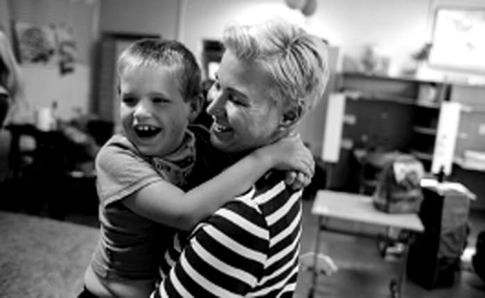 Dagmar and Lucas, a boy with complex needs from Smiling Crocodile School in Prague.