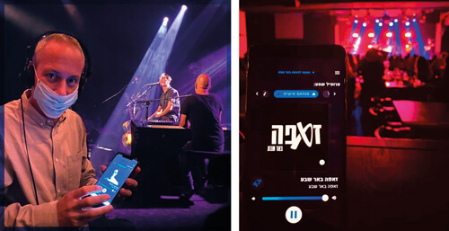 The Minister of Culture and Sport of Israel using the app whilst attending Zappa - the first venue made accessible to the hearing impaired.