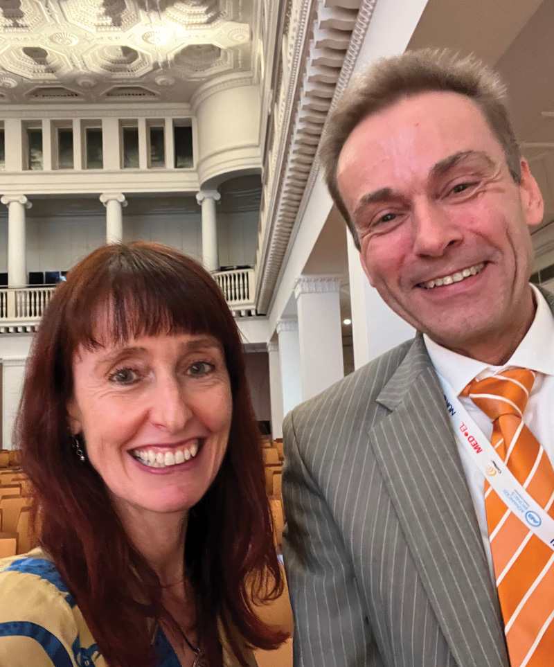 ENT & Audiology News Implantables Specialty Editor Helen Cullington with Andreas Büchner at the ESPCI meeting in Hannover in June 2025.