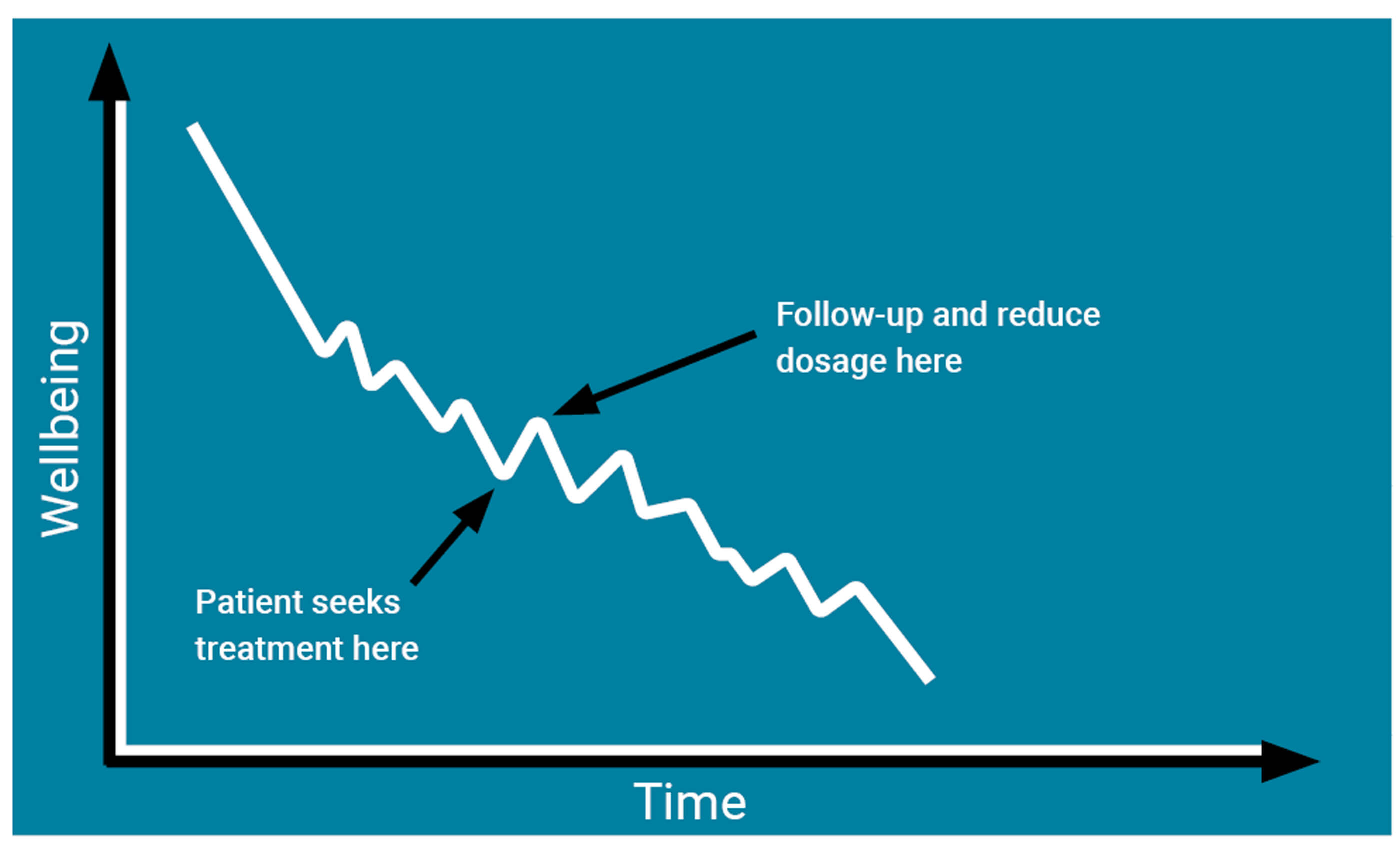 It is of course important to realise that the patient will tend to seek medical help in the trough of feeling much worse than usual. In these circumstances, it is imperative to see the patient as soon as possible as the symptoms are generally about to regress towards their mean and it is essential to be able to take credit before any improvement occurs by applying one’s ineffective remedy. If the symptoms do not improve but plateau, one can still claim credit for arresting the decline, but an increase in the dose of the (expensive) remedy may be needed. In the unlikely event the patient continues to decline, warn the patient that they may have come too late for effective treatment whilst hiking the dose, and the fees, for treatment.