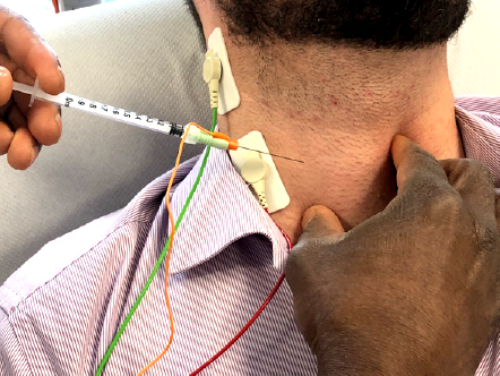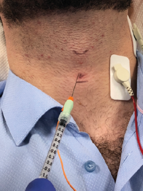 Figure 4. Botulinum toxin A injection with EMG guide.