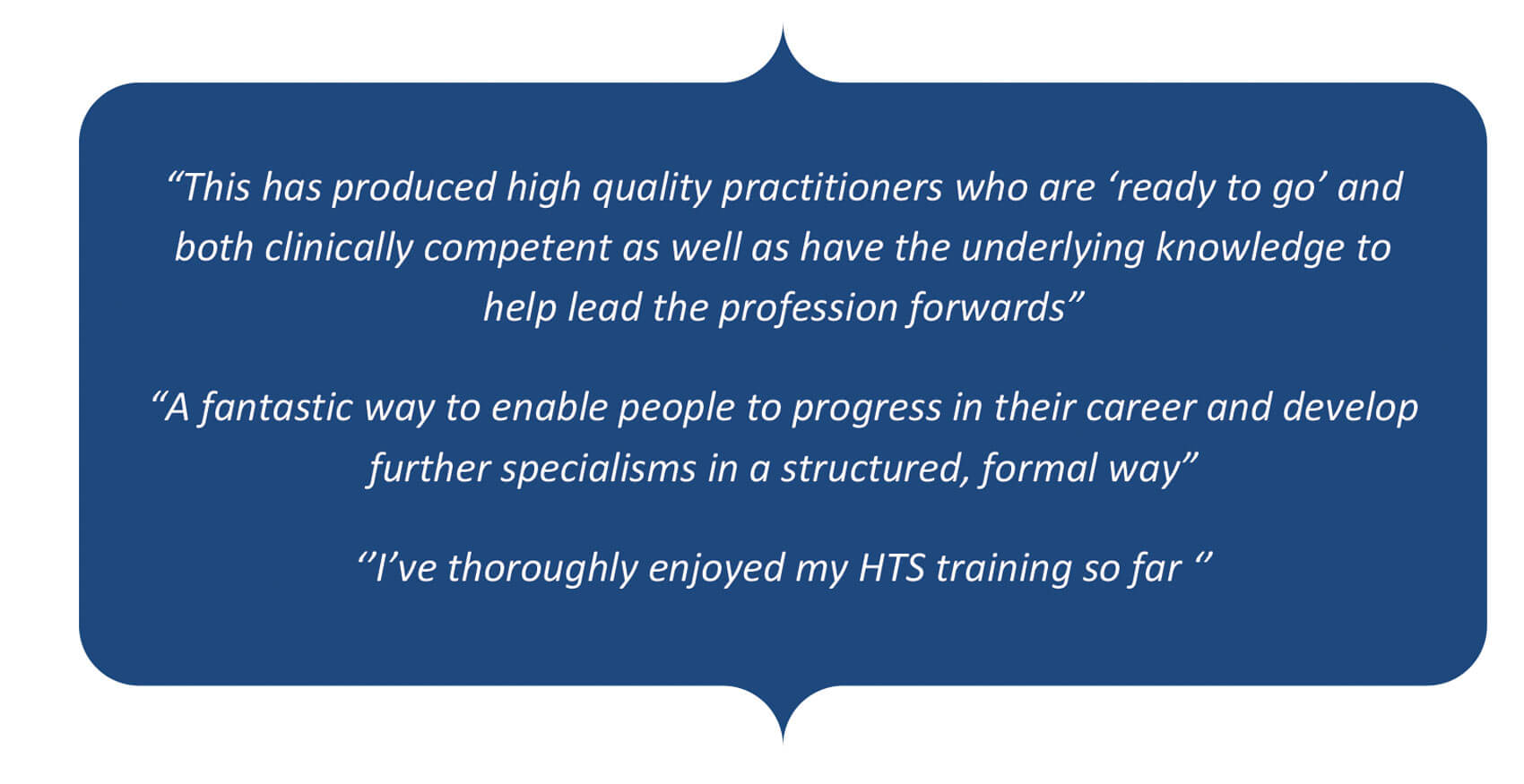“Being awarded the HTS in a particular clinical area shows the individual has the skills required to work independently and lead clinics”