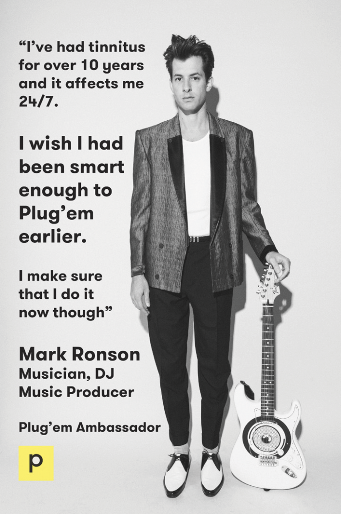 We’ve gone for a largely social media-based campaign: Plug’em already has a strong following on Twitter, Facebook and Instagram. With the backing of several high profile Ambassadors including Mark Ronson (Musician, DJ, and Music Producer) and Anne Savage (DJ, Producer and Presenter), we have been able to raise awareness of the fact that tinnitus can affect anyone. Their messages are to the point, stressing that using earplugs is far better than suffering a constant ringing, buzzing or screeching in the ears.