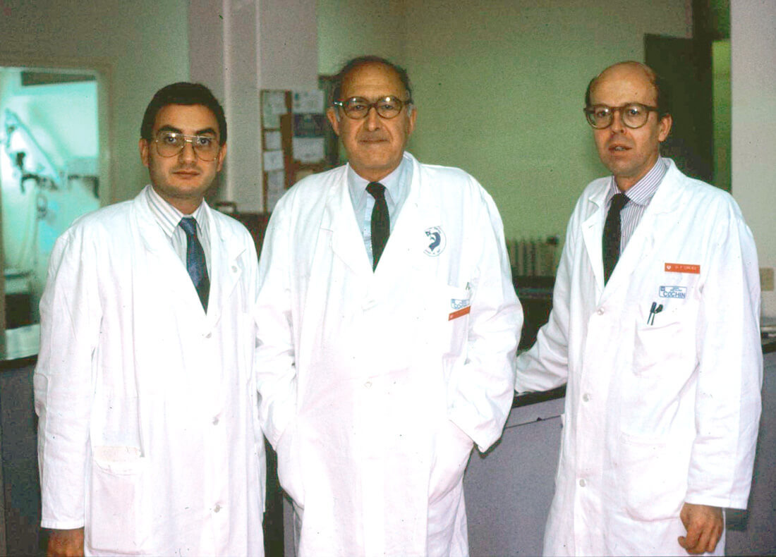 (L-R): Prof Badr, Prof Sterkers and Dr Pacal Corlieu, Chef de Clinique at the Department of ENT, Hôpital Cochin, Paris, May, 1990.