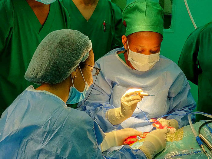Dr Aveline Kahinga performing the surgery under the guidance of Prof Lobna El Fiky.