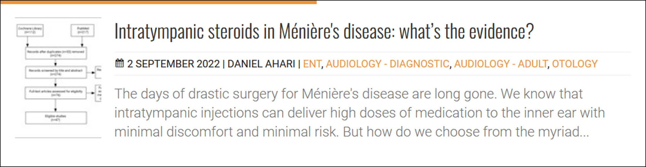 The burden of hearing loss is vast and is felt at the individual and societal level [2]. Those affected are looking to the ENT, audiology, device, and pharmaceutical spheres for more, better, and different solutions. Recent studies linking hearing loss to dementia [5] further underpin the great need for better treatments whist also highlighting the potential dangers of waiting to adopt current interventions. Cochlear implants, and hearing aids, can markedly improve the quality of life of individuals with hearing loss and it is hoped the entrance of therapeutics will, in the future, build upon this legacy.