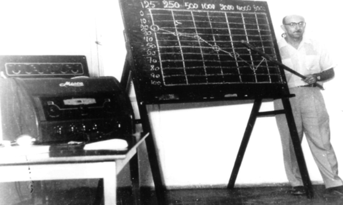 Figure 1. Professor Moshe Rubenstein, MD (1915-1989) was an otolaryngologist from Tel Hashomer hospital (known today as the Sheba Medical Center), who foresaw the importance of building well-equipped audiology clinics with academically-trained personnel, in the newly founded country where speech and hearing services had been provided until then by informally trained staff. Prof Rubenstein founded the first formal university-based, degree-awarding programme in the combined discipline of Audiology and Speech and Language Pathology (termed “Communication Disorders”) in Israel. He was the head of that programme at Tel-Aviv University between 1967 and 1985.