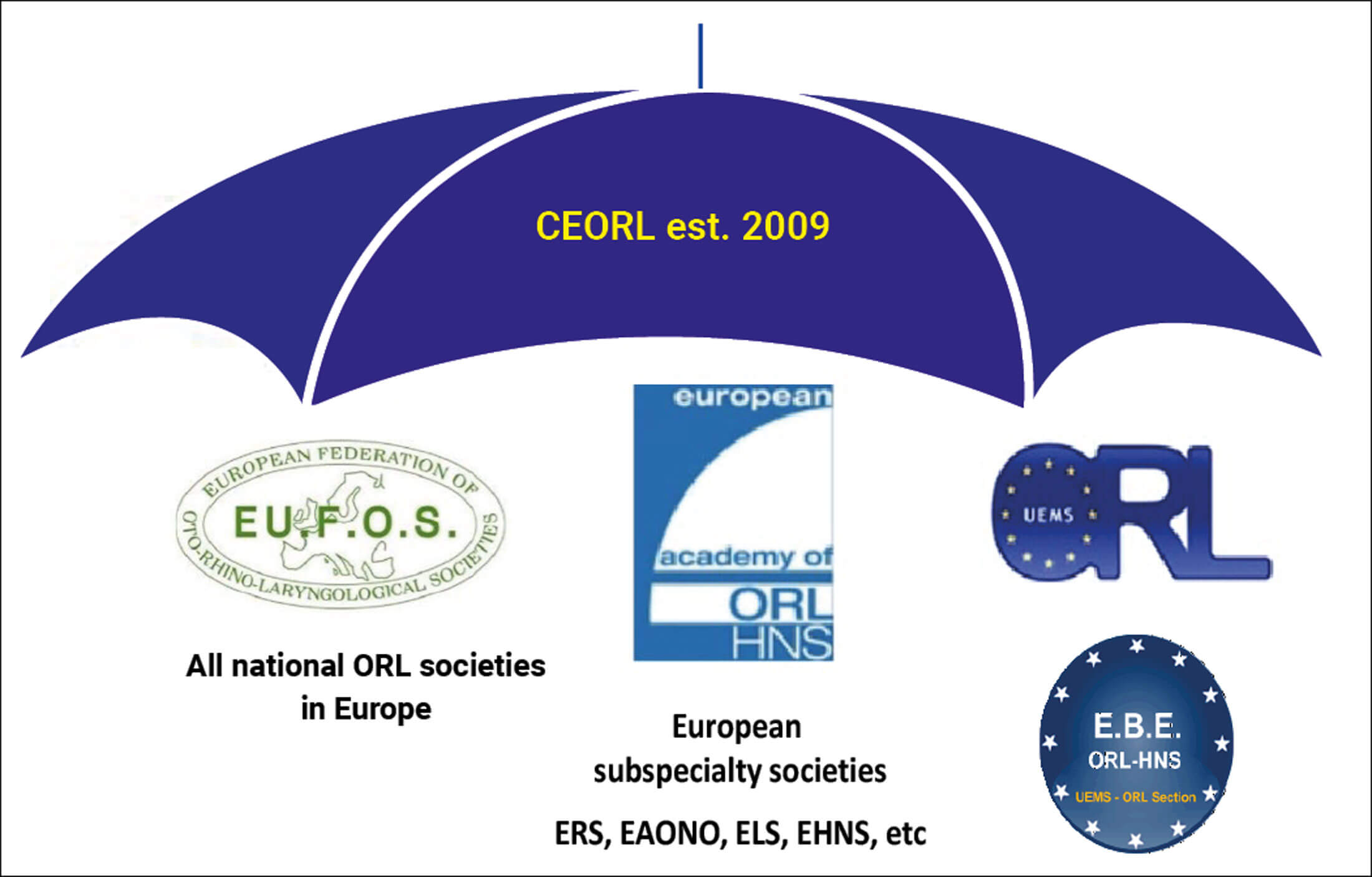 CEORL-HNS is the main European ENT organisation, established in 2009 when the previous EUFOS (national societies) fused with the European Academy (subspecialty societies), also including UEMS ORL (European Union of Medical Specialists ORL) and EBE ORL (the European Board Exam ORL) in an intimate collaboration under one umbrella (Figure 1).