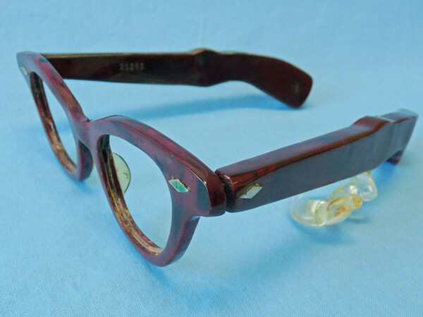 hearing aid. Note the thick, heavy temple pieces. Both were needed for this hearing aid to work.
