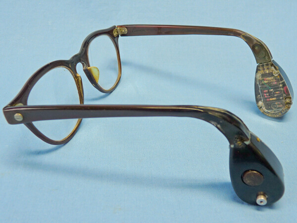 Figure 1. Otarion Model L10 ‘Listener’ eyeglass hearing aid — the world’s first transistorised eyeglass