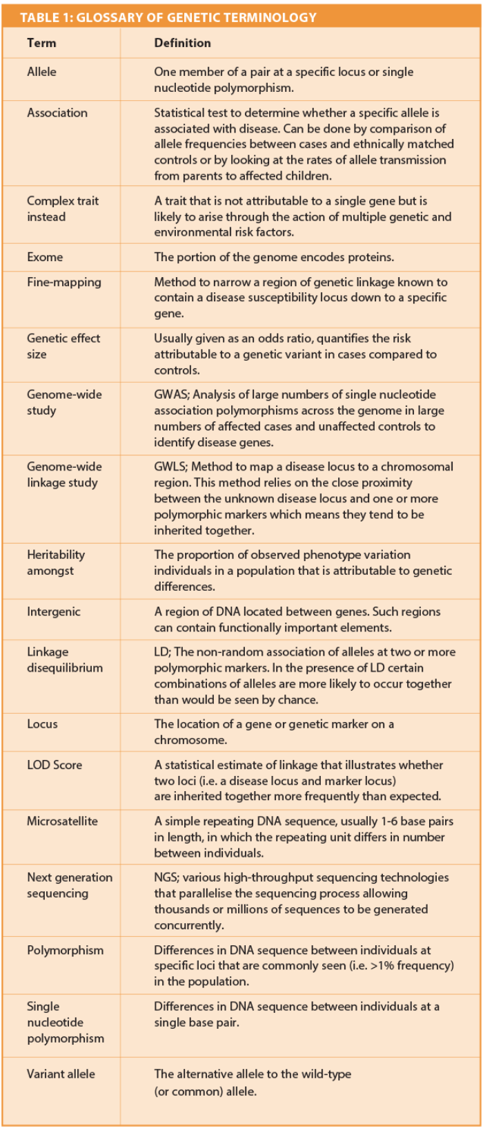 Heritability studies confirm the genetic component is likely to be substantial, explaining 40-70% of the variation in OM phenotype [1]. In order to identify the genes involved in susceptibility to OM several study designs have been employed to date and are described briefly in this article (Table 1).