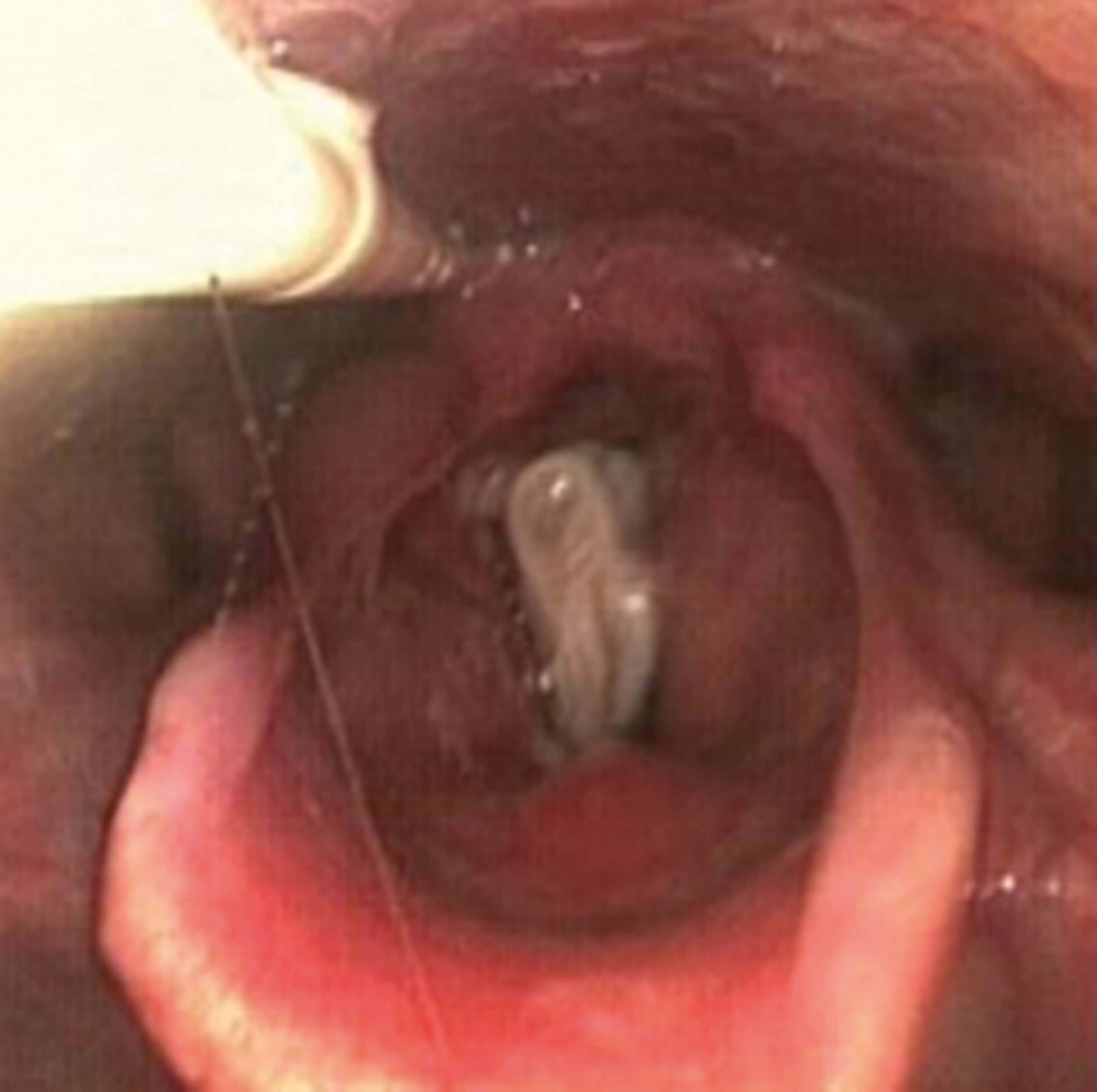 Figure 1. Image of pooled secretions entering posterior larynx via