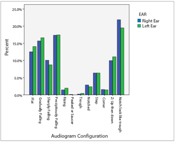 With regards to patterns of audiogram, there are different configurations (Figure 3). Patterns of high frequency hearing loss are most common.