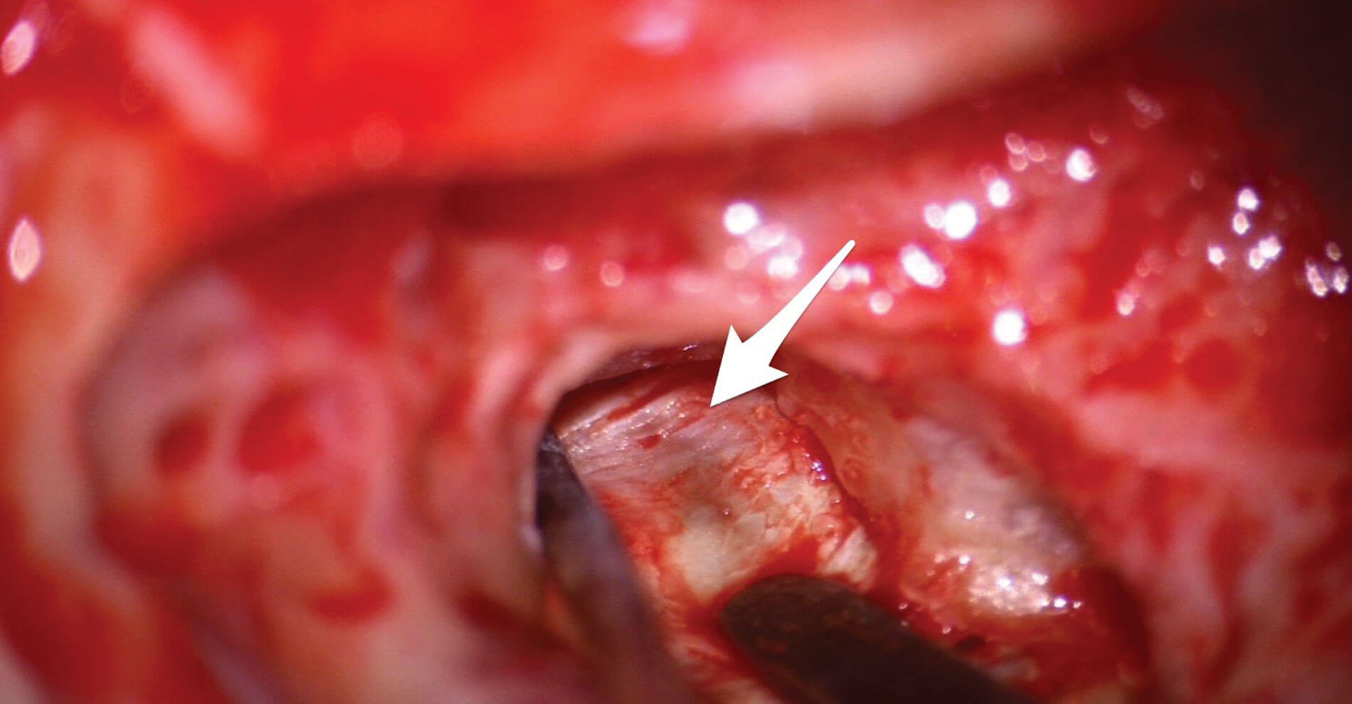 “Studies have shown that decompressing the sac is as effective as placing a shunt, with less chance of permanent hearing loss or spinal fluid leak”
