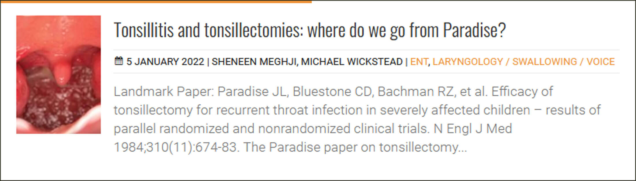 Landmark Paper: Thomsen J, Bretlau P, Tos M, Johnsen NJ. Ménière’s disease: endolymphatic sac decompression compared with sham (placebo) decompression. Ann N Y Acad Sci 1981;374:820-30.