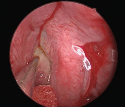 Figure 4. Middle turbinate flap overlay with Tisseel at lateral lamella.