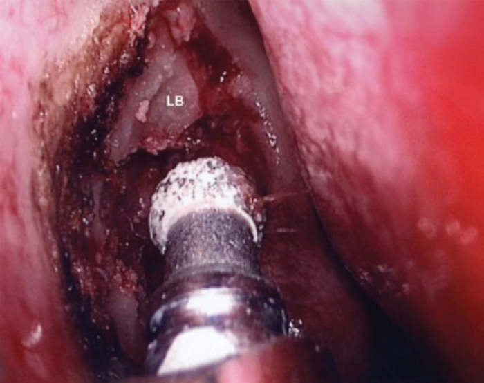 Figure 3. Removal of upper part of lacrimal bone with diamond drill.