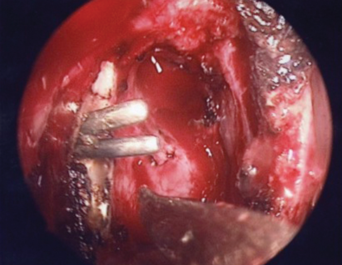 Figure 2a. Removal of Lacrimal bone with Kerrison punch.