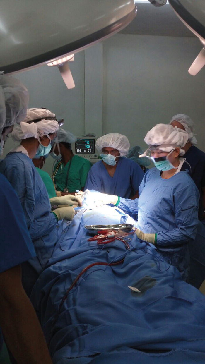 The postoperative care of our patient on ICU was the ideal case for our ICU colleagues to develop protocols for ventilation, fluid / electrolyte balance and sepsis control. The local nursing staff and doctors enthusiastically took up the opportunity to develop skills and knowledge in ICU care.