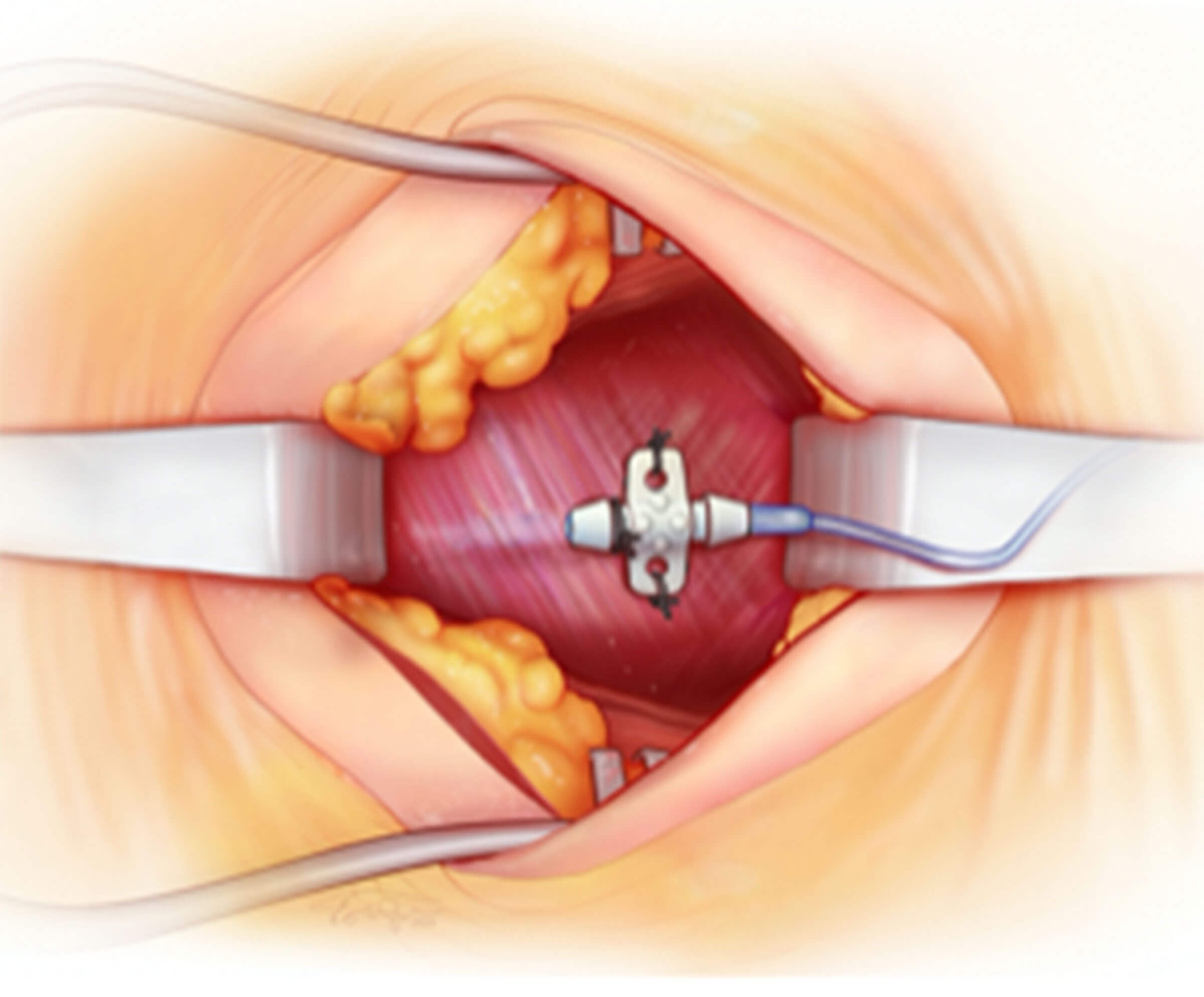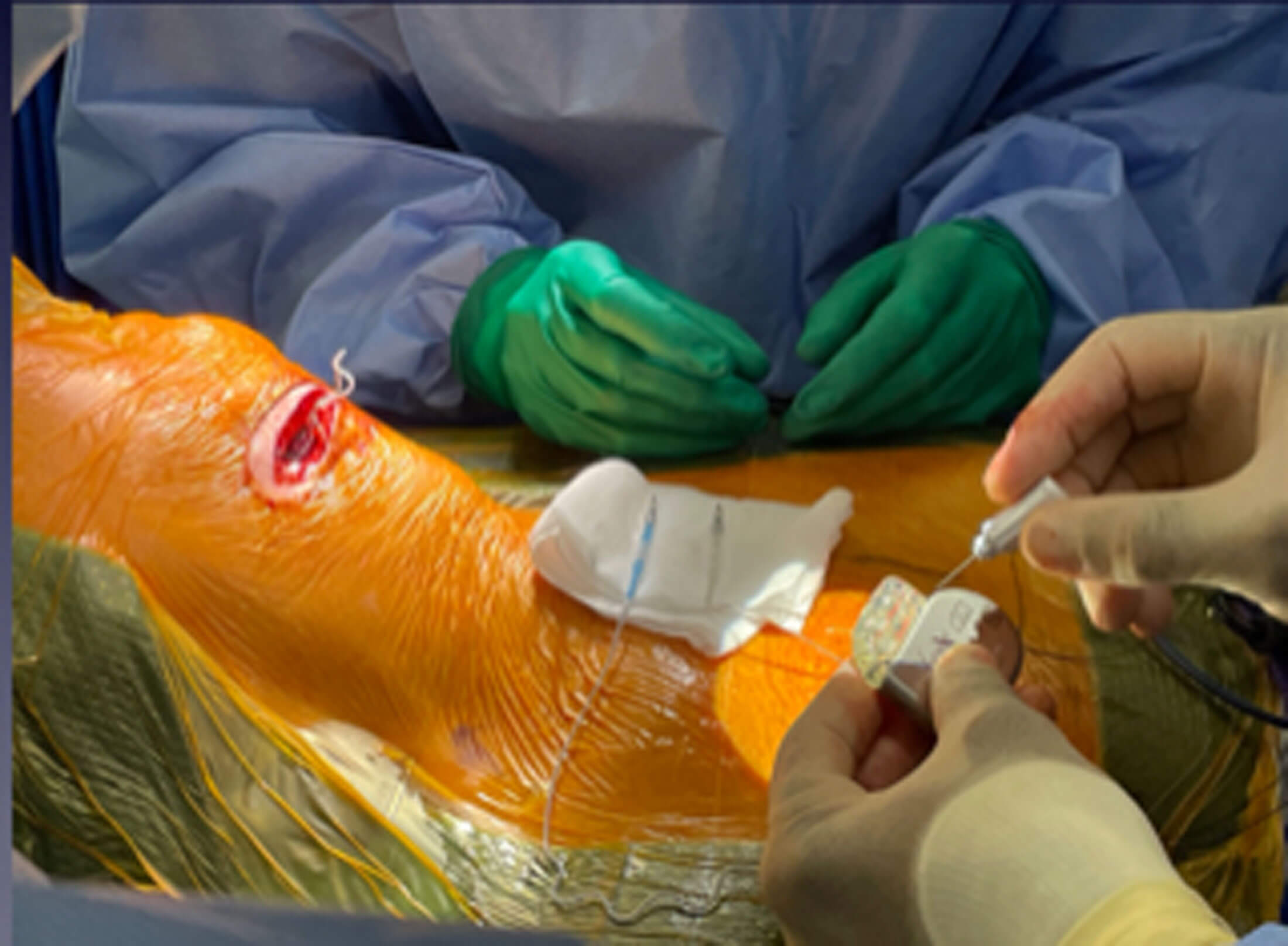 - An impulse generator placed subcutaneously over the pectoralis major muscle on the right chest wall through an incision made 5cm below the right clavicle and 3cm lateral to the lateral border of the sternum on the right side (Figures 3a-b).