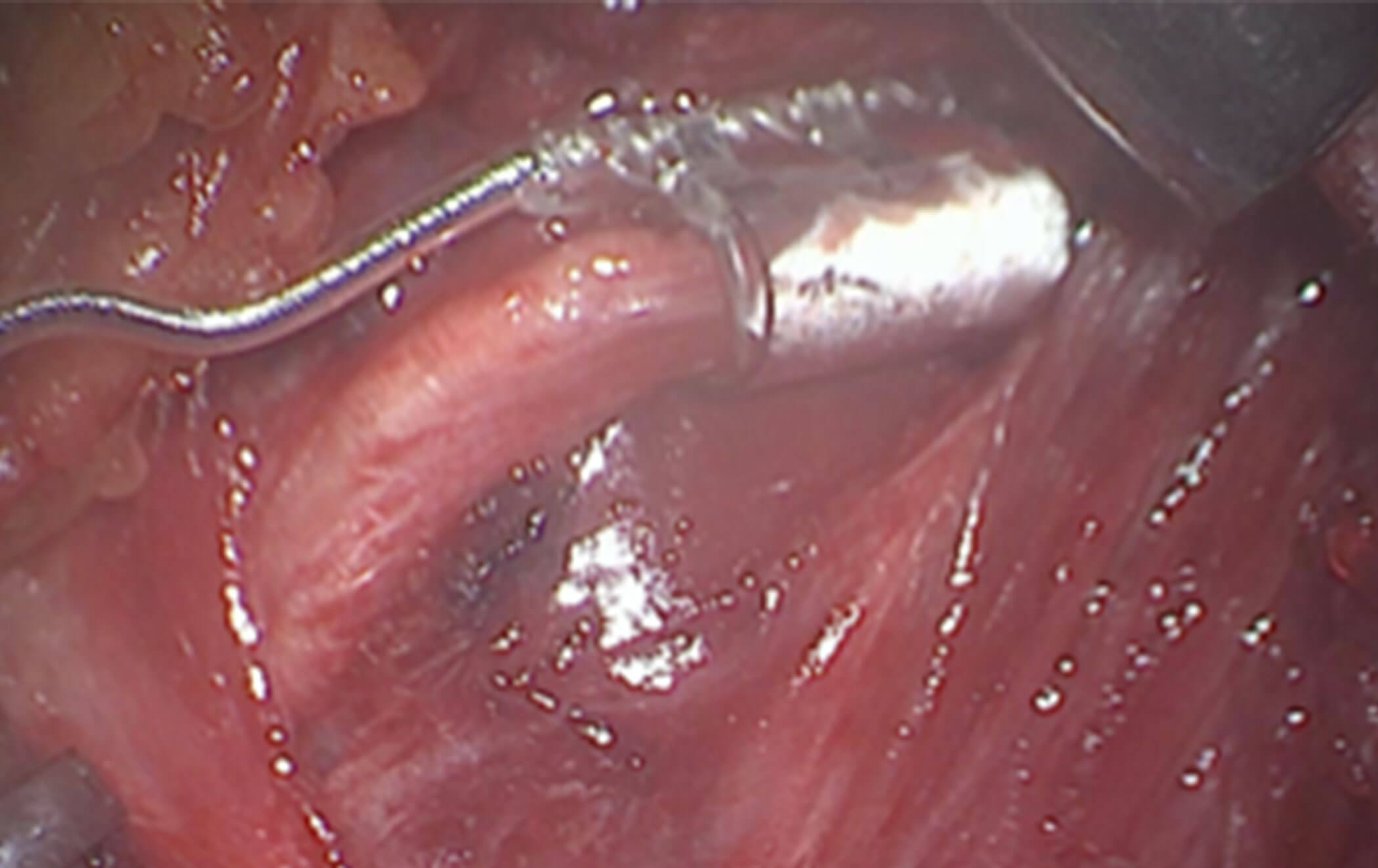 Figure 5. Intraoperative picture showing tunnelling of the electrode cable between the neck