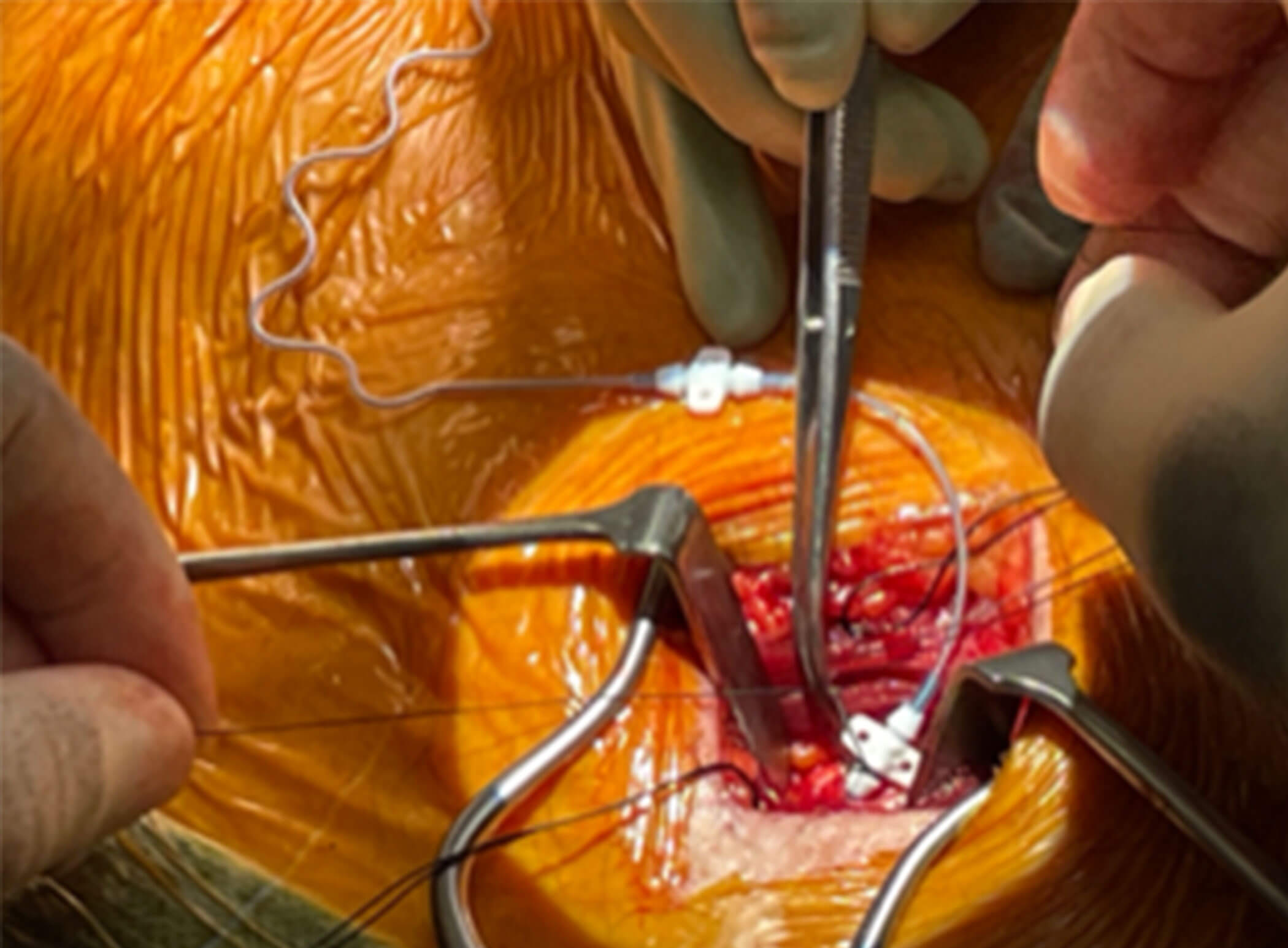 - The chest pulse generator is then connected to the neck electrode cuff via a cable tunnelled subcutaneously (Figure 5).
