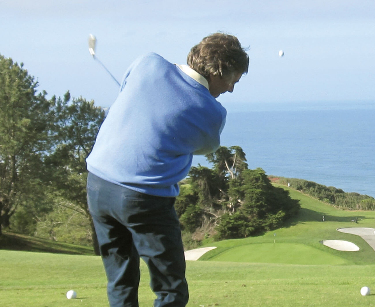 Fred driving a par 3 in Torrey Pines Golf Course, La Jolla, CA.