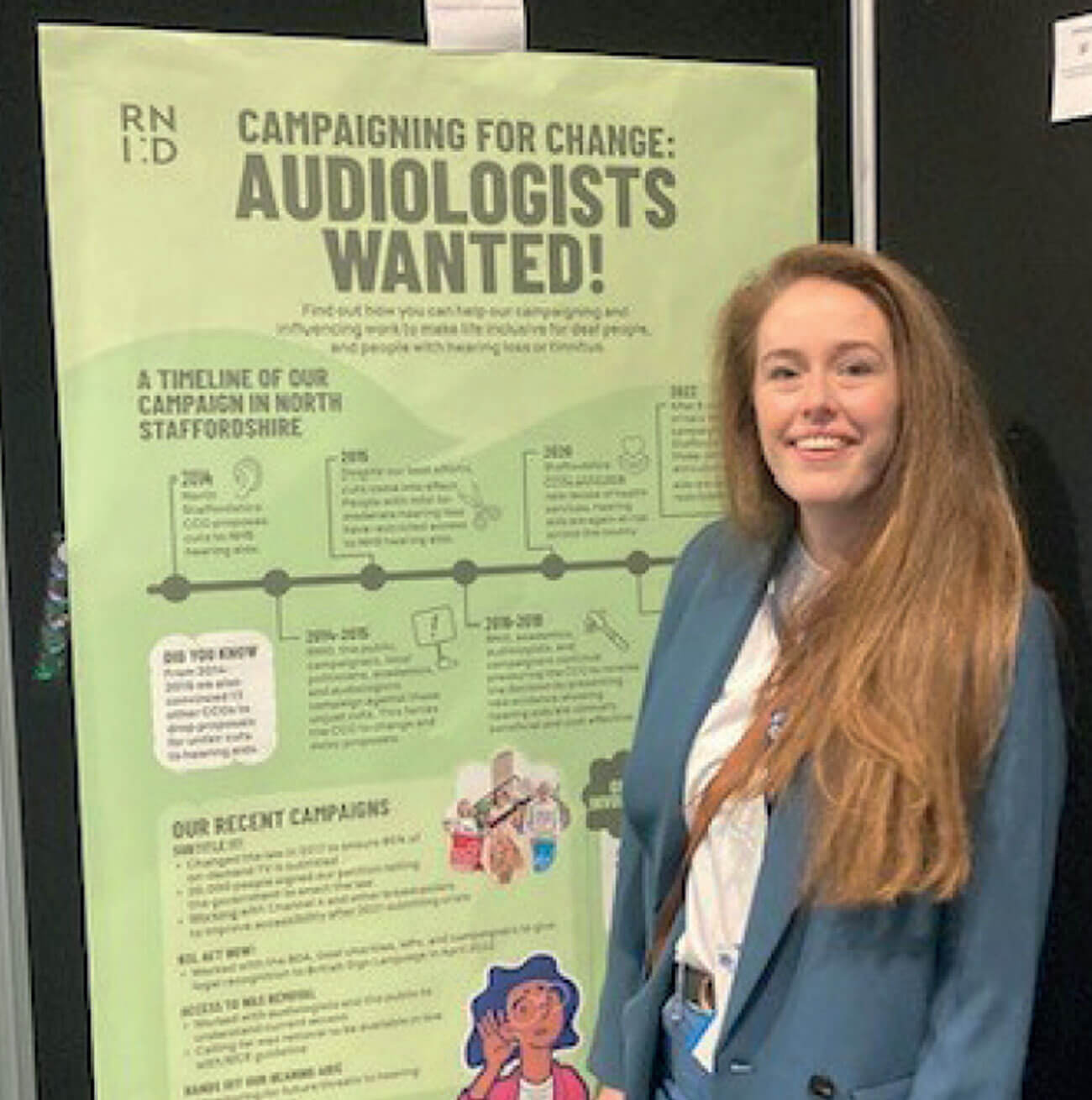 Hi! I’m Franki and I’m the audiology manager at the Royal National Institute for Deaf People (RNID), a charity supporting people in the UK who are deaf, have hearing loss or tinnitus. I work within the campaigning and influencing team and lead our national audiology policy work, ensuring that everything we do puts the needs of our communities at the centre.