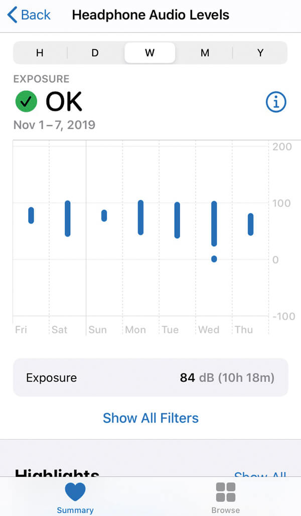 The most recent Apple iOS 13 update has new features for the Health App, including a section dedicated to hearing health. A notable feature is the ability to measure sound levels from headphones so that listeners can monitor their noise exposure from their devices. The app uses guidelines from the World Health Organization (WHO) to clearly indicate to listeners when their noise exposure is within acceptable limits, or if it’s at a level that is potentially dangerous to their hearing. The app also includes other filter options that give users a more detailed account of their noise exposure and listening habits. Once compatible headphones are connected to the device, the app automatically starts collecting the data, making it extremely user-friendly.