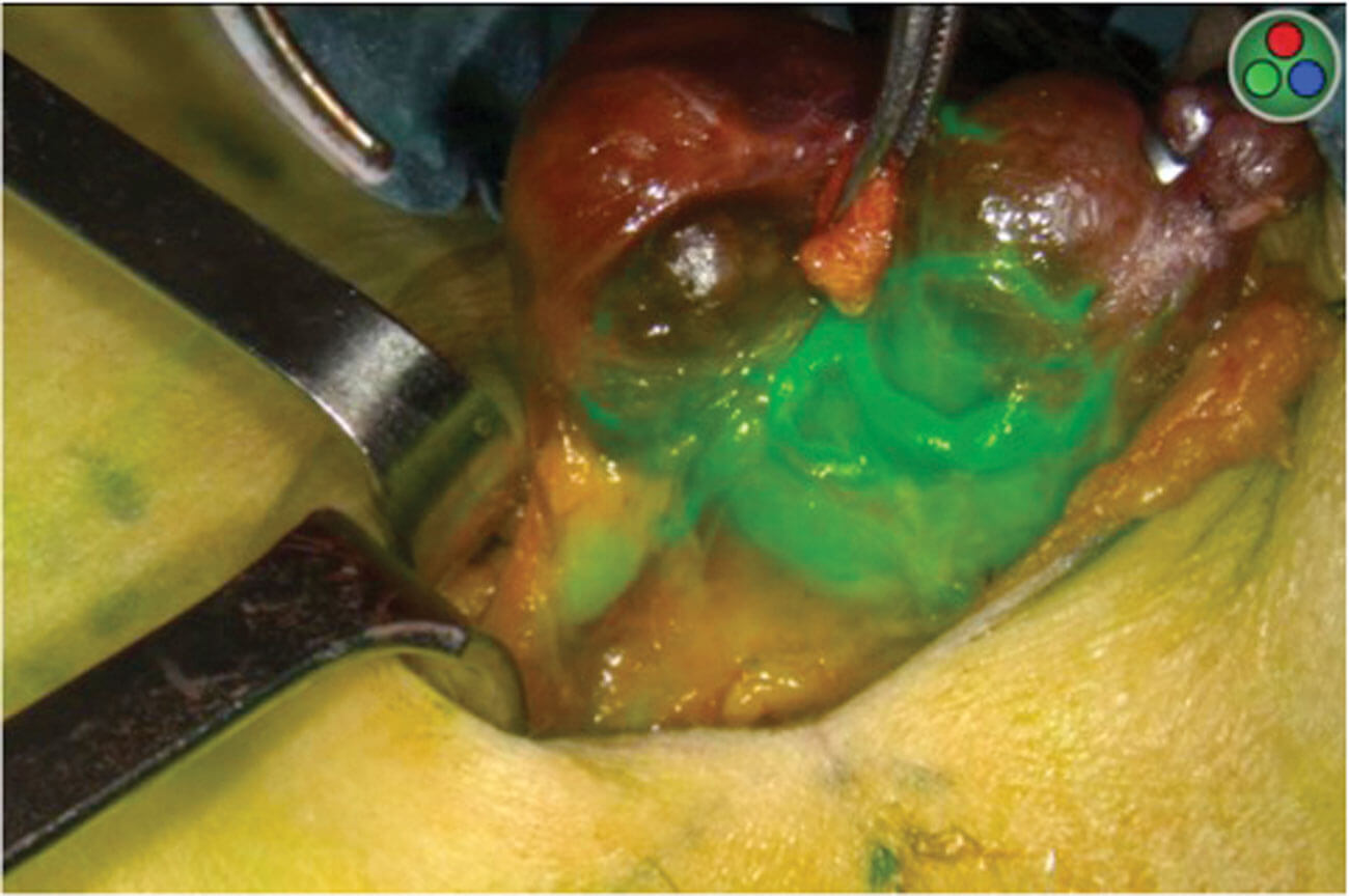 Fluorescence guided surgery (FGS) is a technique that aids in the identification of specific structures in real time that may not be normally visible under white light. A variety of fluorophores exist; however, we will consider indocyanine green (ICG) as this has gathered the greatest evidence base over time, is readily available, cheap, and is licensed for use by the US Food and Drug Administration (FDA) and UK Medicines and Healthcare products Regulatory Agency (MHRA) (although only currently licensed for diagnostic uses in liver, cardiac and ophthalmic studies, and is otherwise off-label).