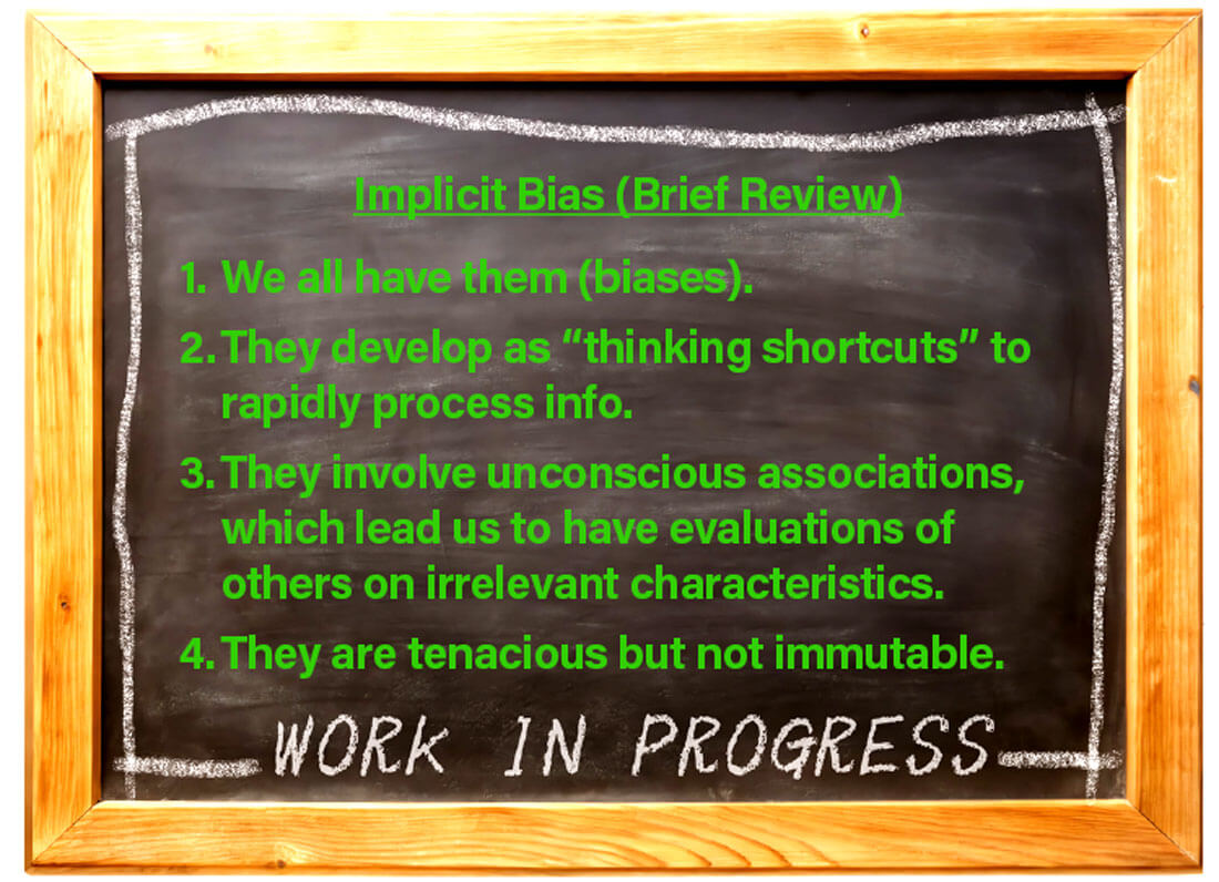 Although not a comfortable topic, the one variable that we can directly and personally address is unconscious or implicit bias. On the one hand, it’s easy to explain: as neurologists like to say, ‘If you have a brain, you have biases’ [2]. On the other hand, accepting ourselves as biased persons can be a struggle and, even when we acknowledge bias as a universal experience, we may not have associated unaddressed biases as a barrier to person-centred care. We might not be aware that ‘truisms’ we absorbed in our formative years would cause us later, as clinicians, to be less open, less curious, more directive, more abrupt with those we hold biases against. Another variable: given the diversity of our populations, we must also factor in the likelihood of unconscious bias occurring many times throughout the day, as we encounter patients who differ from us by race, culture, socioeconomic status, LGBTQ+ identities, religion, political affiliations and more. Finally, lest we assume audiologic practices are free of bias, evidence indicates otherwise. Recent examples include disparities in adult cochlear implantation, delayed paediatric referrals and rehabilitation, and under-representation in genetic testing [3,4,5]. As the saying goes, ‘it’s a lot to unpack.’