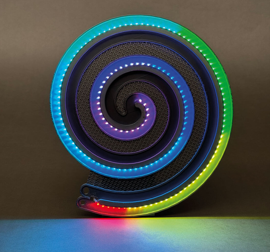 Illuminated cochlea model.