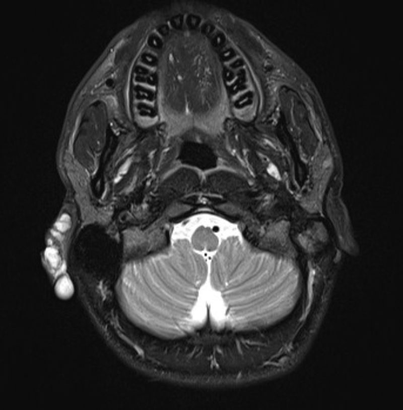 Figure 2: T2 weighted fat sat axial MRI image of extensive low-flow venous malformation