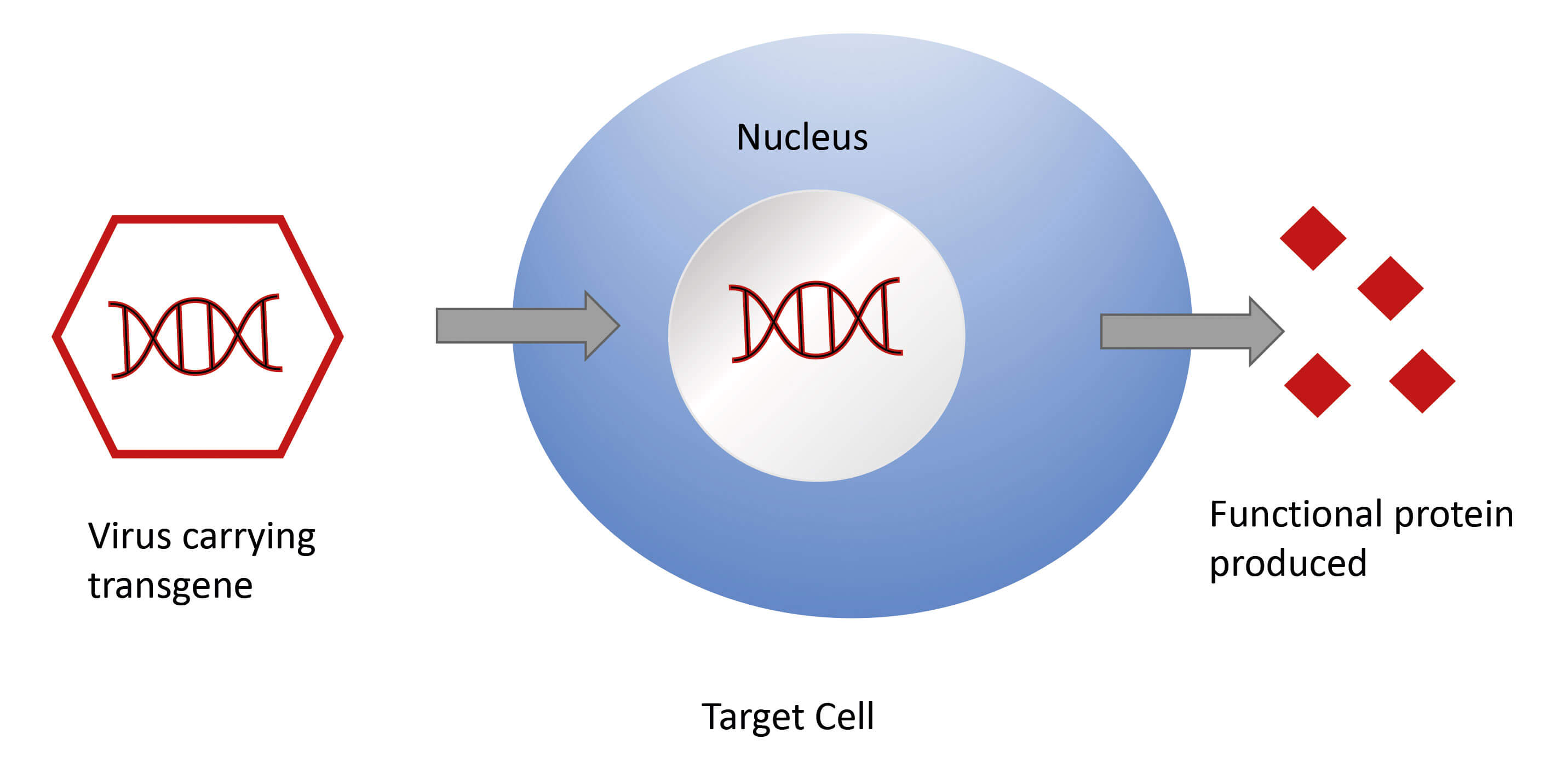 You need to address the underlying genetic cause to cure genetic forms of hearing loss. This can be done by providing a genetic substitute for a non-functioning gene (introducing a transgene) (Figure 2). Typically, this would use a viral vector to exploit the host cell replication machinery to copy the introduced genetic material. Other strategies include using substances such as antisense oligonucleotides (ASOs) to target the faulty product of a defective gene, or targeted gene editing using CRISPR-Cas9 to correct the specific genetic fault.