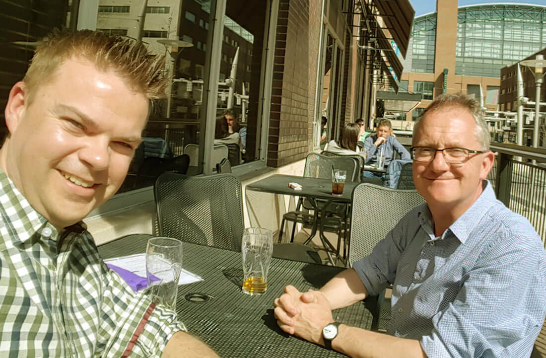 David Stockdale and David Baguley reflecting on an action-packed AAA in the Indianapolis sun in 2017.