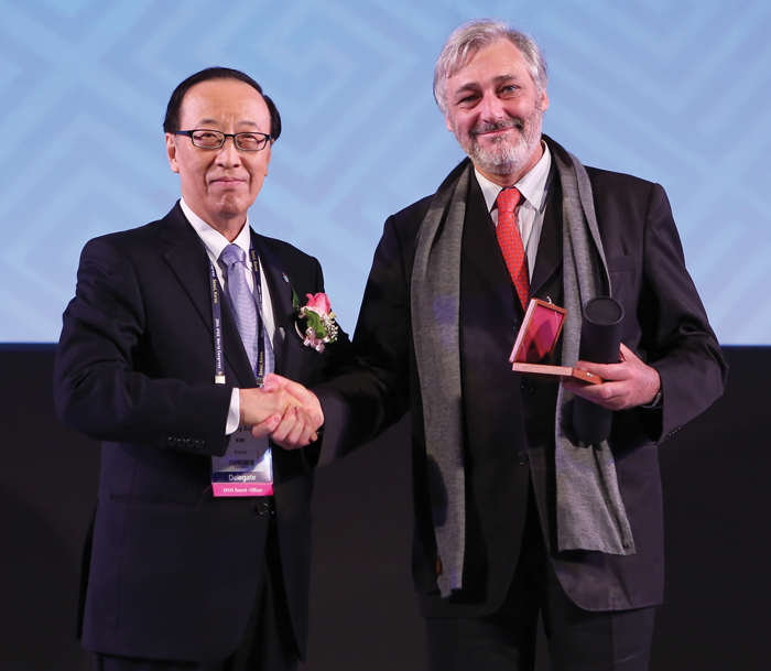 Erwin Offeciers receiving the IFOS Gold Medal Award from IFOS President,