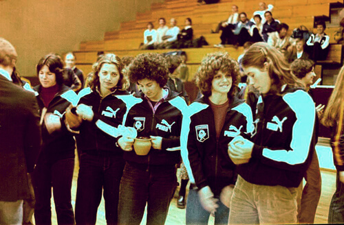The Israeli women volleyball national team at the Palma de Mallorca European Spring Cup tournament, 1976.
