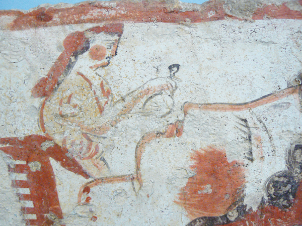 • A small mirror, once used to test the last breath of a dying woman, which I found on the fresco of a tomb in Paestum dated about 320 BCE. An early nasal function test!