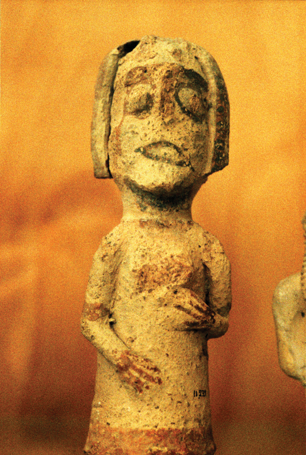 • A 13.5 cm high earthenware figurine of a woman from the 7th to 6th Century BCE (Heraklion Museum) which was excavated in Gortys, South Crete and exhibits a facial palsy due to a stroke which also affected the left arm.