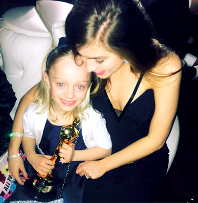 Rachel and Maisie with their Oscar.