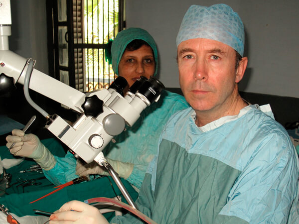 Robin Youngs undertaking ear surgery in Nepal, assisted by Odette Ferrao.