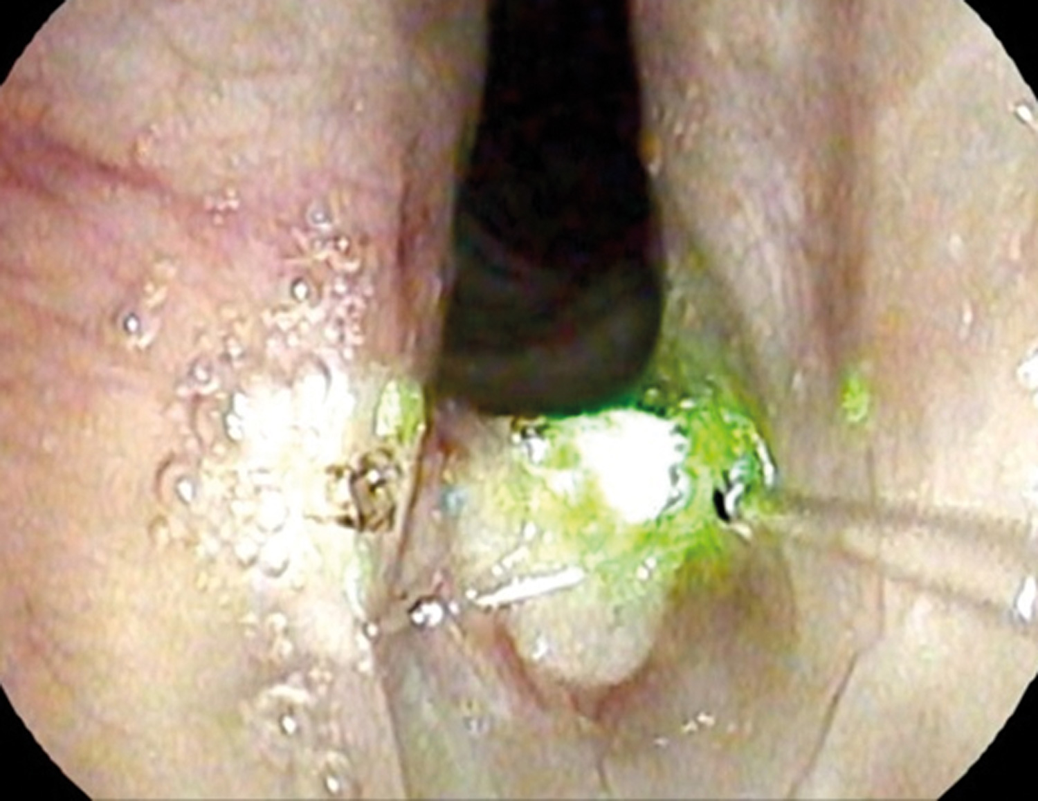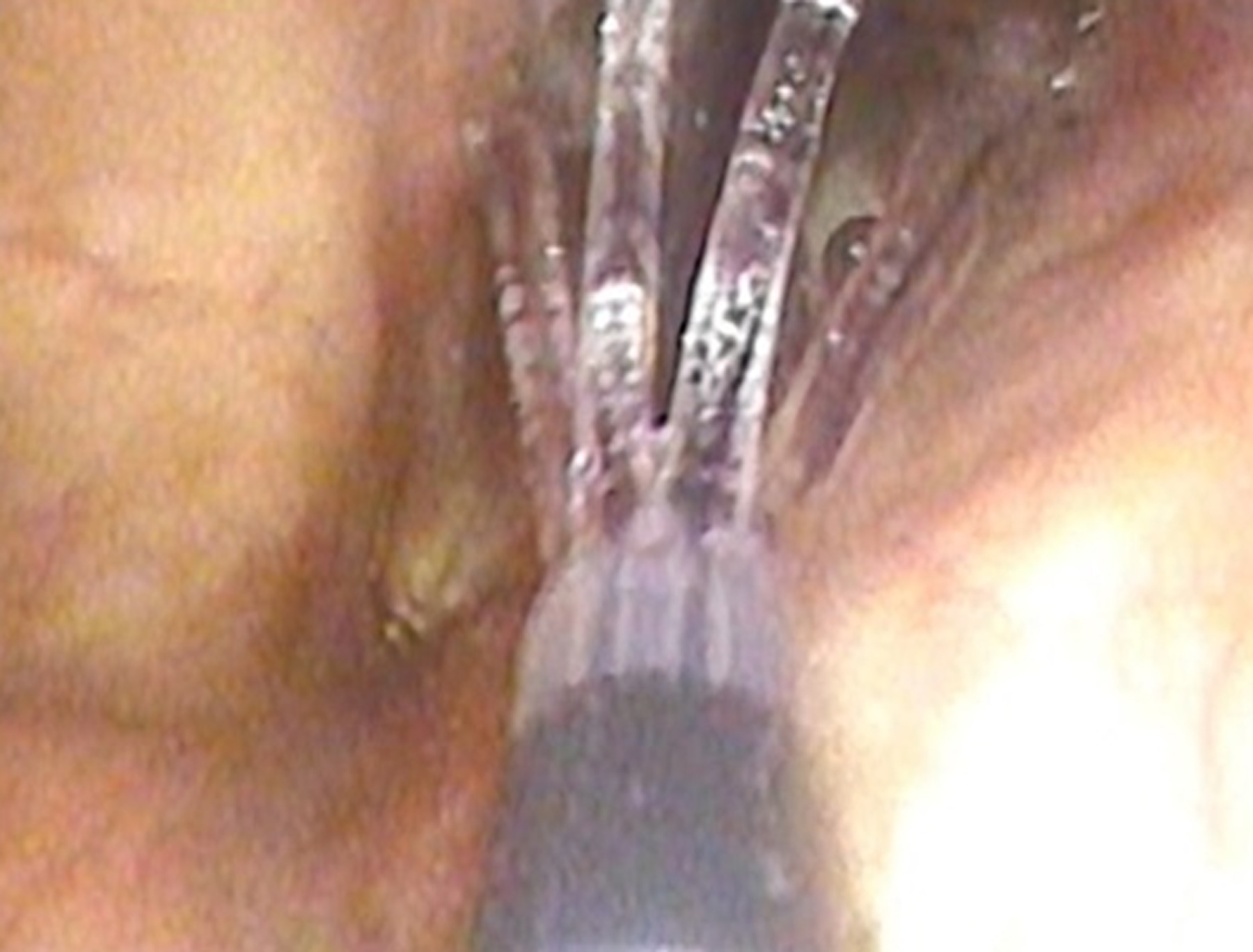Figure 5: Intralesional steroid injection to subglottic stenosis.