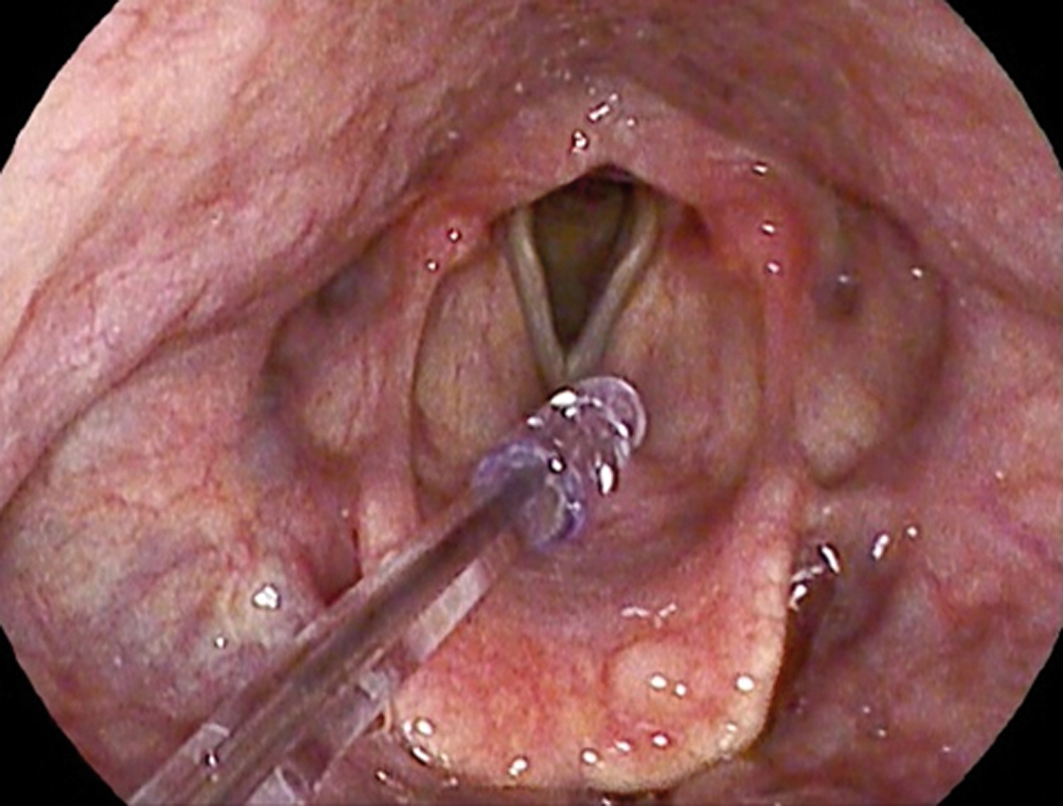 Any laser delivered via a flexible fibre system can be used in the office for scar division and granulation tissue removal in the subglottic and tracheal airway. However, Blue Light or KTP laser equipped with both cutting and haemostatic properties, allows controlled ablation of stenotic segments or the creation of radial incisions to release circumferential narrowing. When combined with the use of non-occlusive balloon dilation in the office, laser treatment provides airway expansion and improves lumen patency. In the authors’ practice, TruBlue 445nm (A.R.C. Laser) is routinely used.